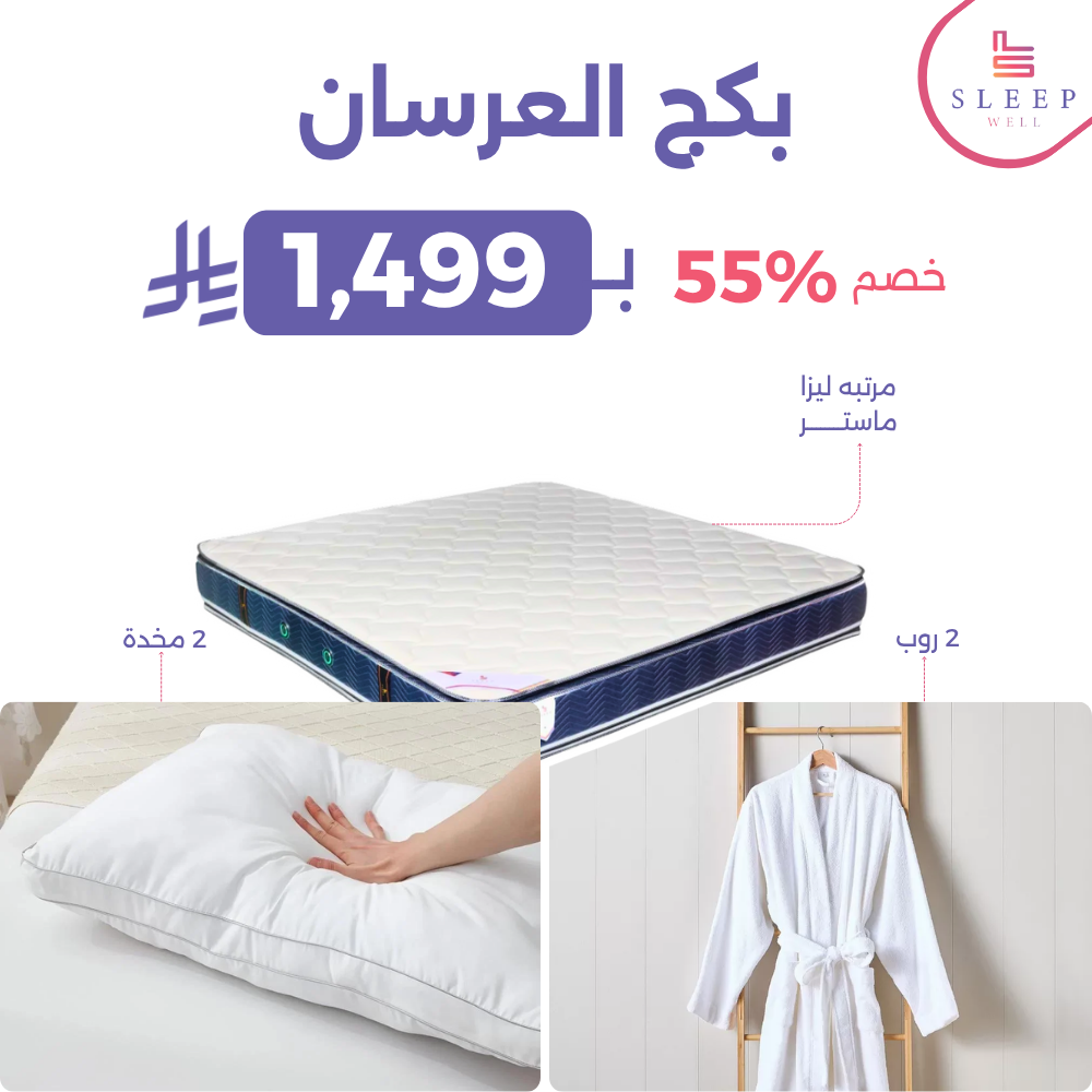 لا يوجد أجمل من بداية تُبنى على راحة واستقرار. اطلب بكج العرسان من Sleep Well الآن وامنح نفسك وشريكك نومًا هادئًا... كما يليق ببدايتكما.